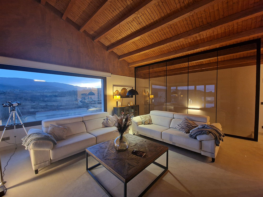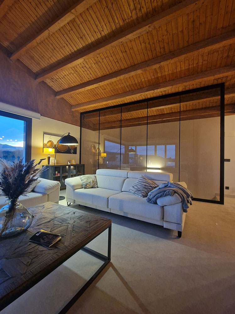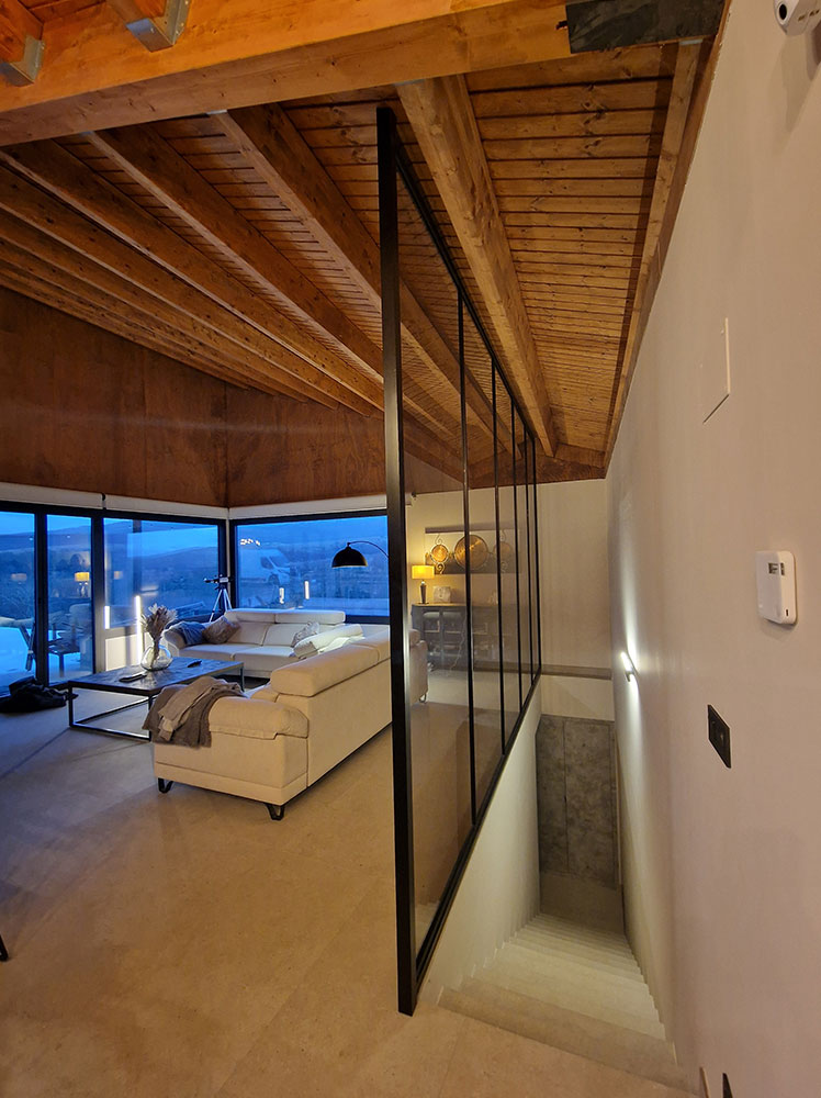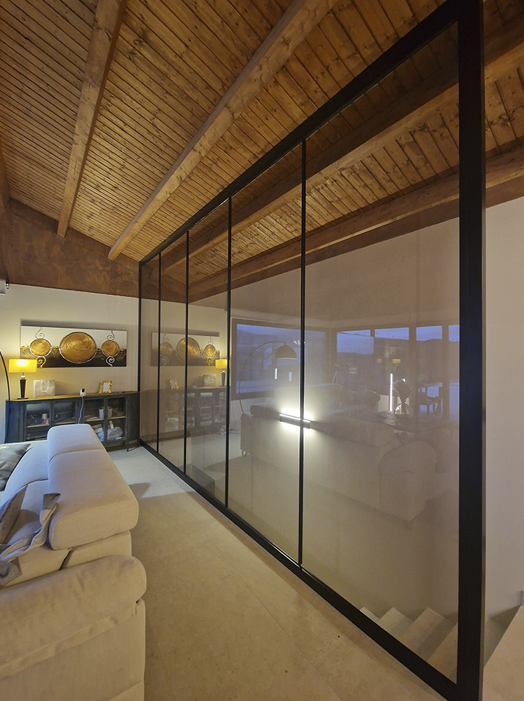 Lo que si hemos hecho, es fabricar e instalar esta división con perfil lacado negro y vidrio con acabado bronce que, creemos, se integra de maravilla y le da un toque diferente al espacio